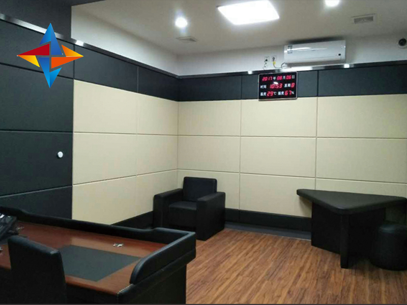 詢問(wèn)室防撞軟包采用高密度環(huán)保阻燃的歐文斯科寧棉,飾面皮革或者布藝,防撞系數(shù)高,且不易斷裂,是派出所辦案區(qū)審訊室等執(zhí)法辦案區(qū)墻面防撞、保護(hù)嫌疑人出現(xiàn)自殘等行為的專用產(chǎn)品材料。