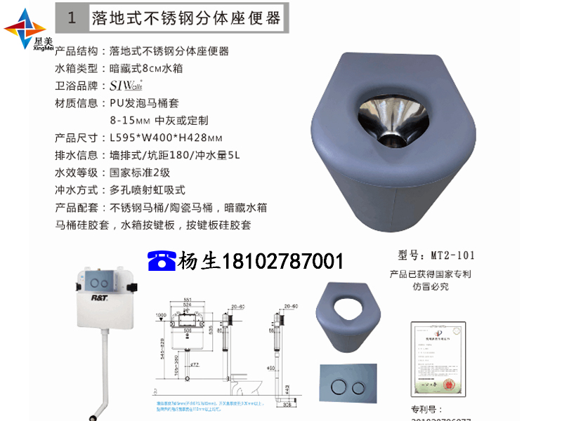產(chǎn)品結構:落地式不銹鋼分體座便器