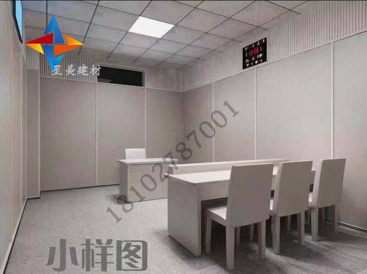 按照設(shè)計(jì)要求,材料的厚度為20mm、30mm,規(guī)格為1250*2450毫米,墻面高度一般為3米,0.6米做吸音板,顏色分為淺灰或米黃,防線和定位精準(zhǔn),需在談話室墻面輕鋼龍骨做好木工底板用于安裝,材料為環(huán)保E0級,且甲醛濃度小于0.1毫克標(biāo)準(zhǔn),符合設(shè)計(jì)要求及現(xiàn)行產(chǎn)品技術(shù)規(guī)范。輔助材料包括中線收邊條,PVC卡扣底座以及門邊線,牢固連接每個相連點(diǎn)的縫隙,嵌縫小于10毫米范圍。