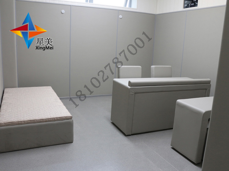 審訊室軟包現(xiàn)在對于應(yīng)用辦案區(qū)場所,辦案區(qū)場所是拘留犯人,審問犯人等地方。同時在監(jiān)獄里,司法部門,紀(jì)委談話室還有一些別墅的室內(nèi)裝修都在使用這種軟包裝修材料的。由于審訊室軟包具有防撞的性能,可以防止撞傷可防止磕碰,所以防止犯人會出現(xiàn)撞頭和利用室內(nèi)的工具做出傷害自己的事情。所以安裝軟包可以起到防撞的效果,讓犯人的極端思想和危險行為無處可施。在審訊室內(nèi)部,不僅對墻面進(jìn)行軟包防撞建設(shè),還對桌椅,衛(wèi)生間的洗手臺和馬桶都進(jìn)行了軟包覆蓋,確保實(shí)現(xiàn)全方位無死角防撞,防護(hù)安全,防止危險情況發(fā)生。